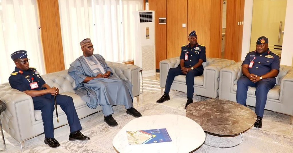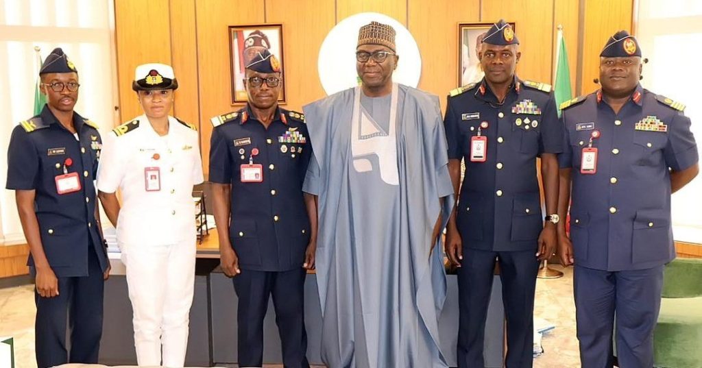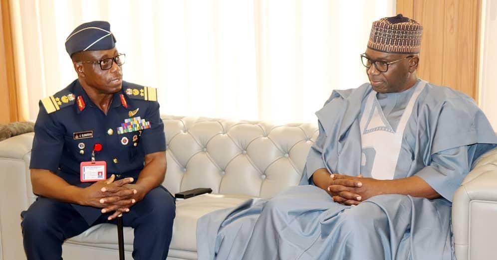 The Chief of Defence Space Administration CDSA, AVM LI Oluwatoyin along with some PSOs of the Administration, paid a courtesy visit to the Governor of Kwara State, His Excellency, Mallam Abdulrahman Abdulrasaq CON on Mon 8 Oct 24 at the Government House, Ilorin, Kwara State.